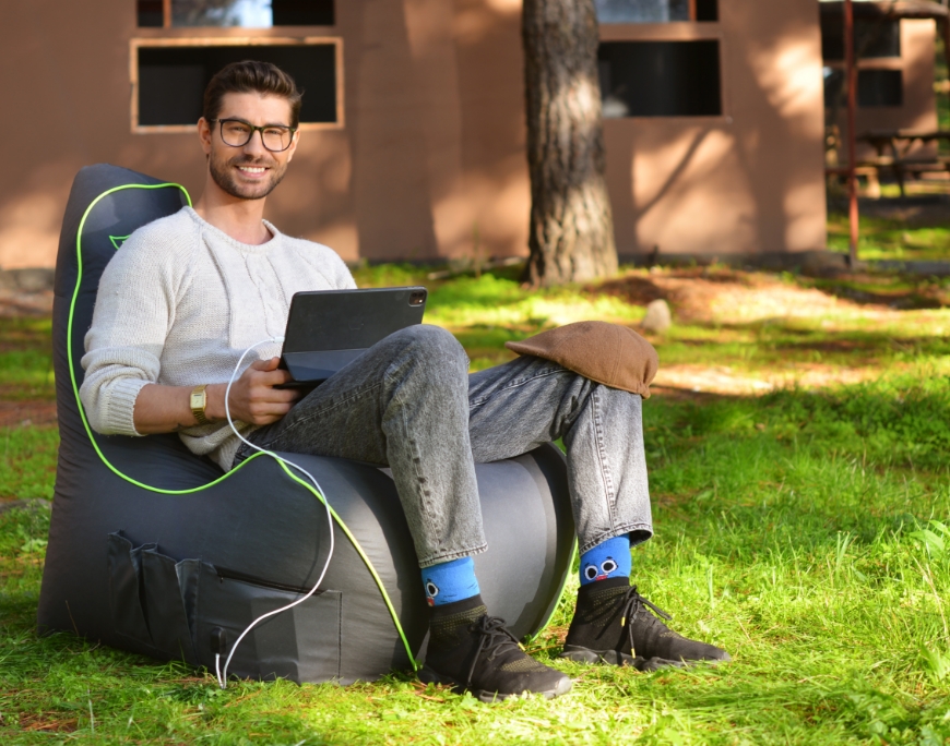 Wir verwenden hochwertige Materialien, einschließlich wasserdichter Perlen im Inneren und ausschließlich OEKO-TEX Stoffe, um eine optimale Qualität und Langlebigkeit unserer Sitzsäcke zu gewährleisten.